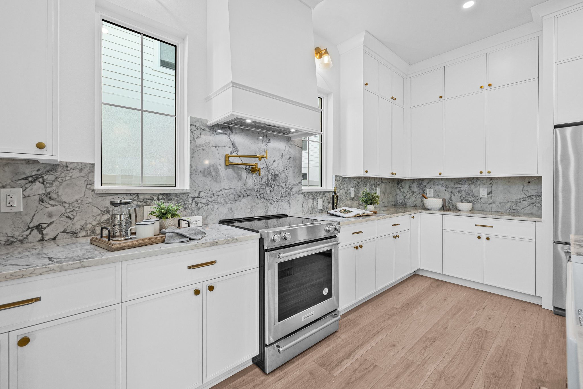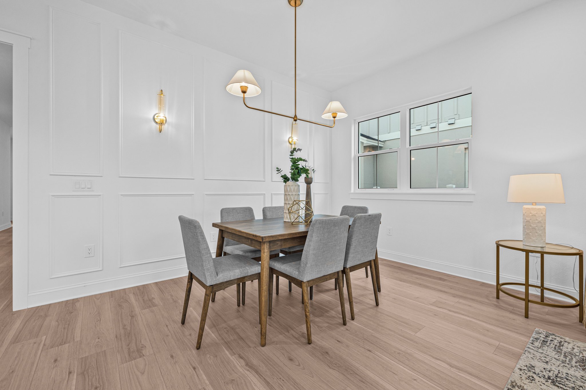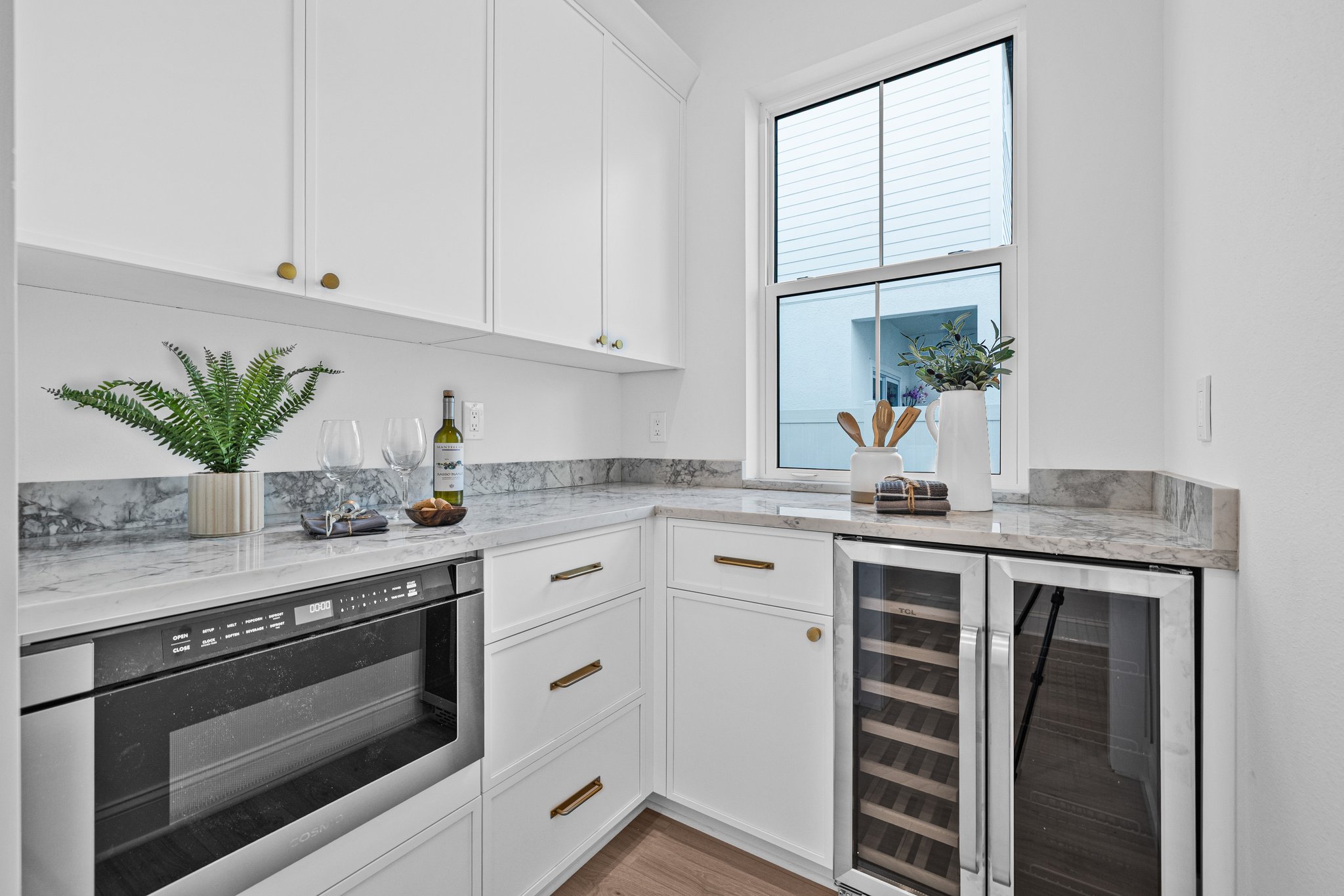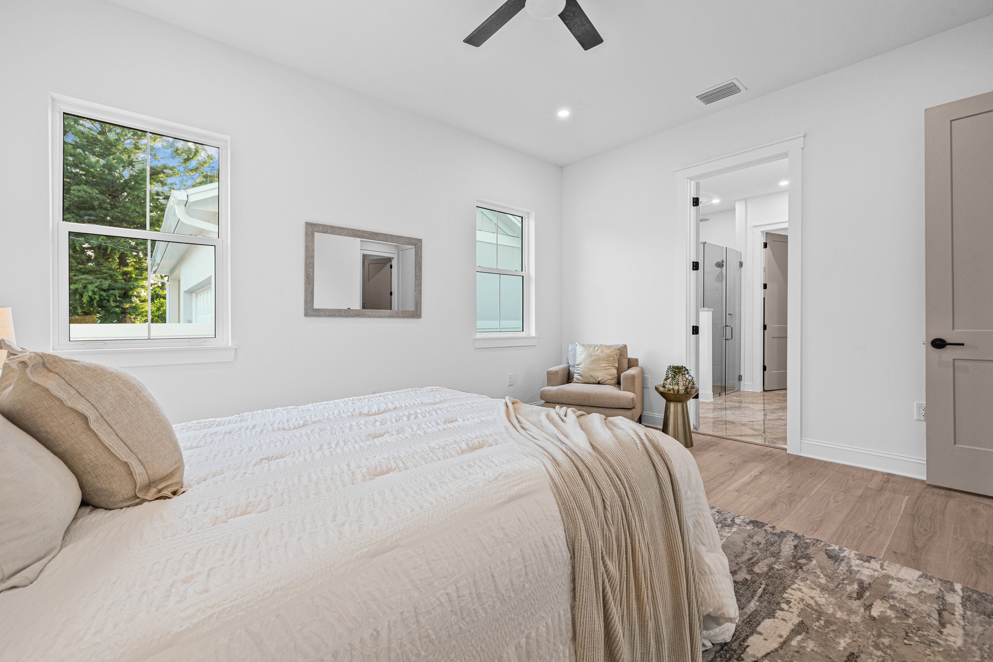 A polished new-construction residence in North St. Petersburg with a first-floor primary suite, dramatic open living volume, and designer-led finishes throughout. The home balances crisp architectural lines with warm, livable interiors and a layout designed for both everyday comfort and effortless entertaining.